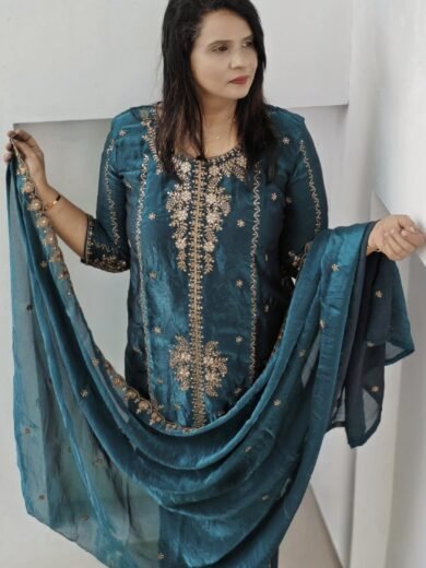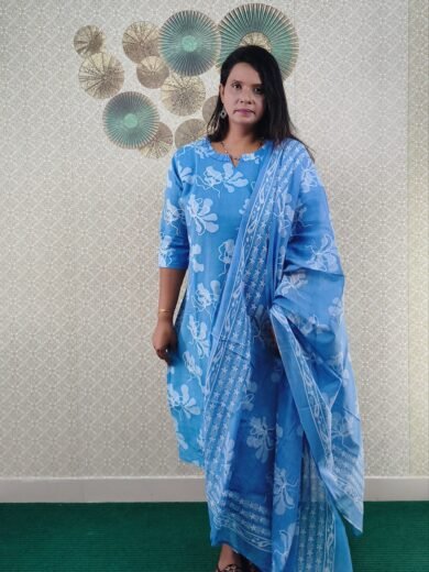 TEAL BLUE COTTON THREE PIECE SET- SAL551