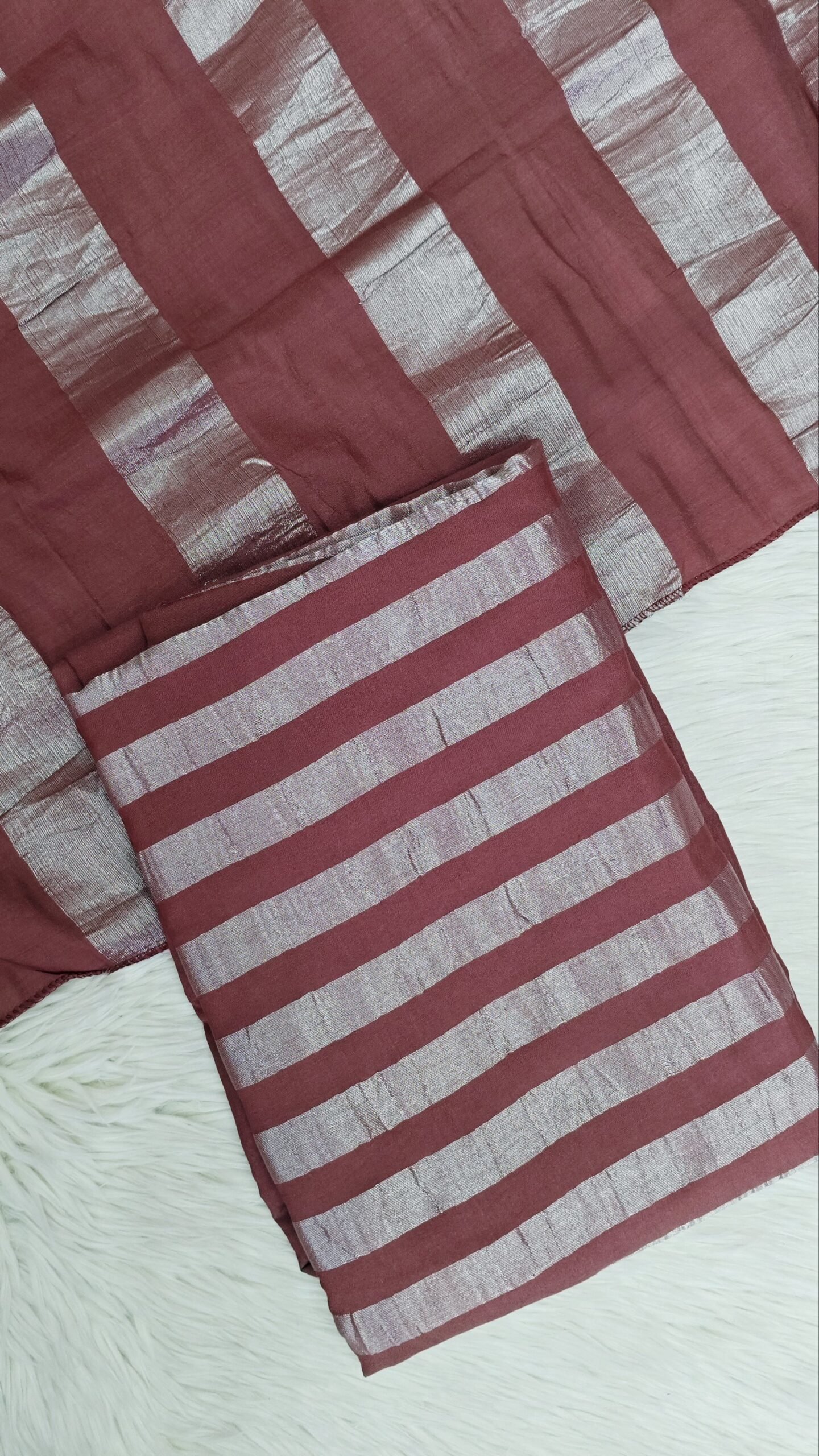 Unstiched Salwar material Color: Mauve Fabric- Normal Silk Top: 2.5 mtr Dupatta: 2.4 mtr Bottom: 2 mtr Bottom Fabric- Soft Santoon material