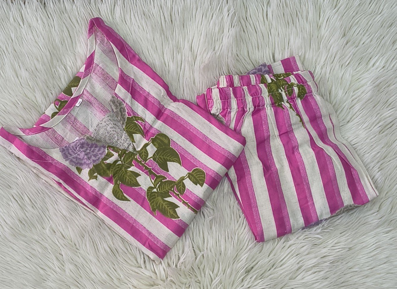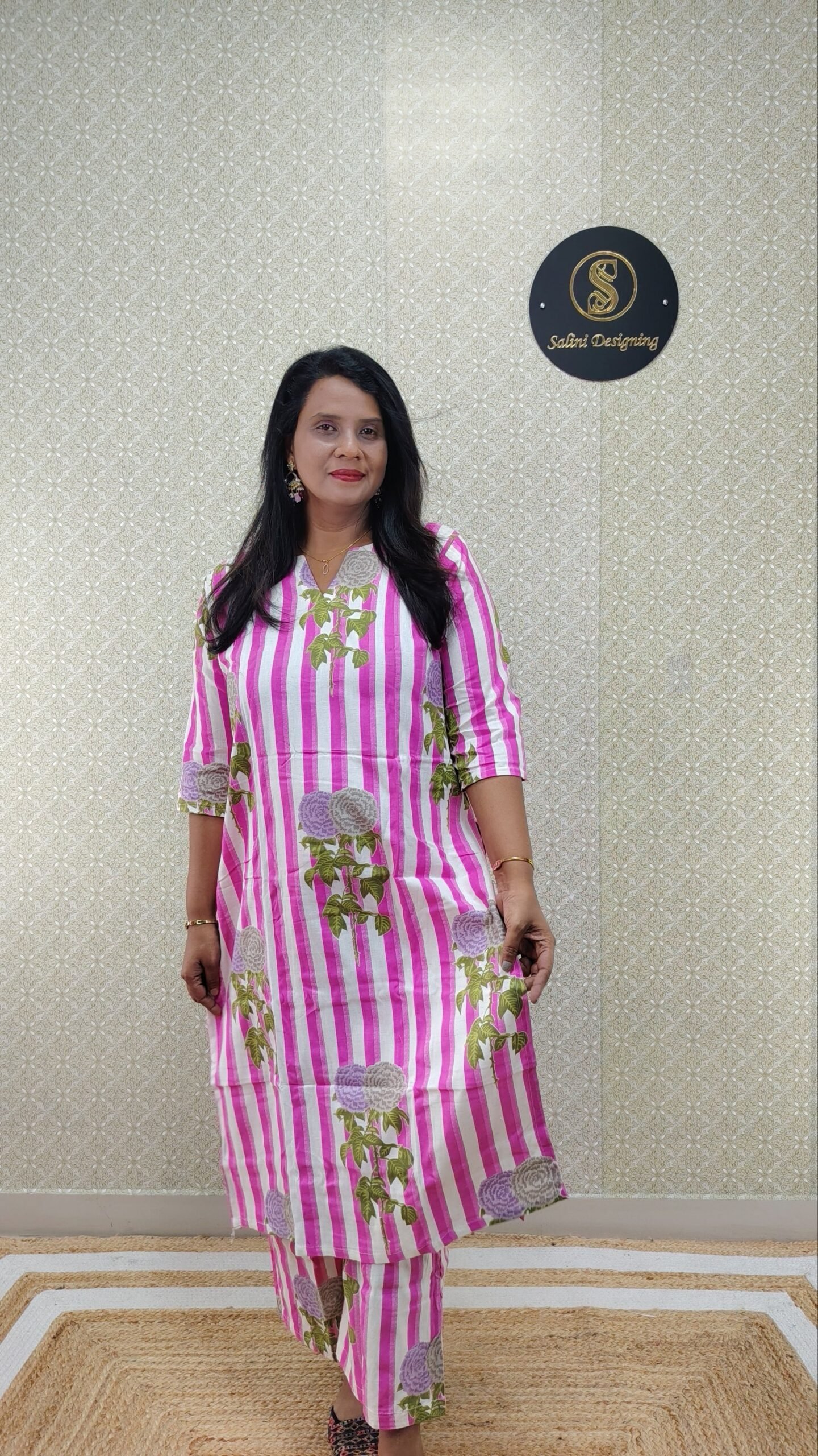 Fabric- Kora Cotton Floral Print 2 Piece set Slitted Top Without Lining ¾ sleeves Without Lining 46-Length Semi loose Palazzo