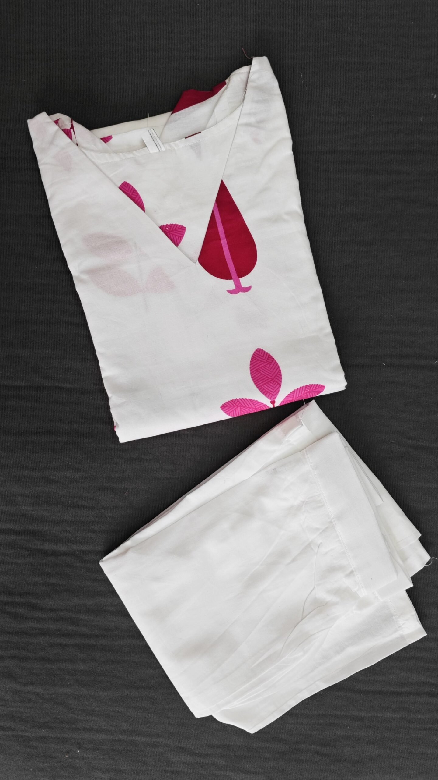 Cotton Fabric 2 Piece set With Lining Length - 46 3/4 Sleeves without Lining V neck Normal Cotton Bottom
