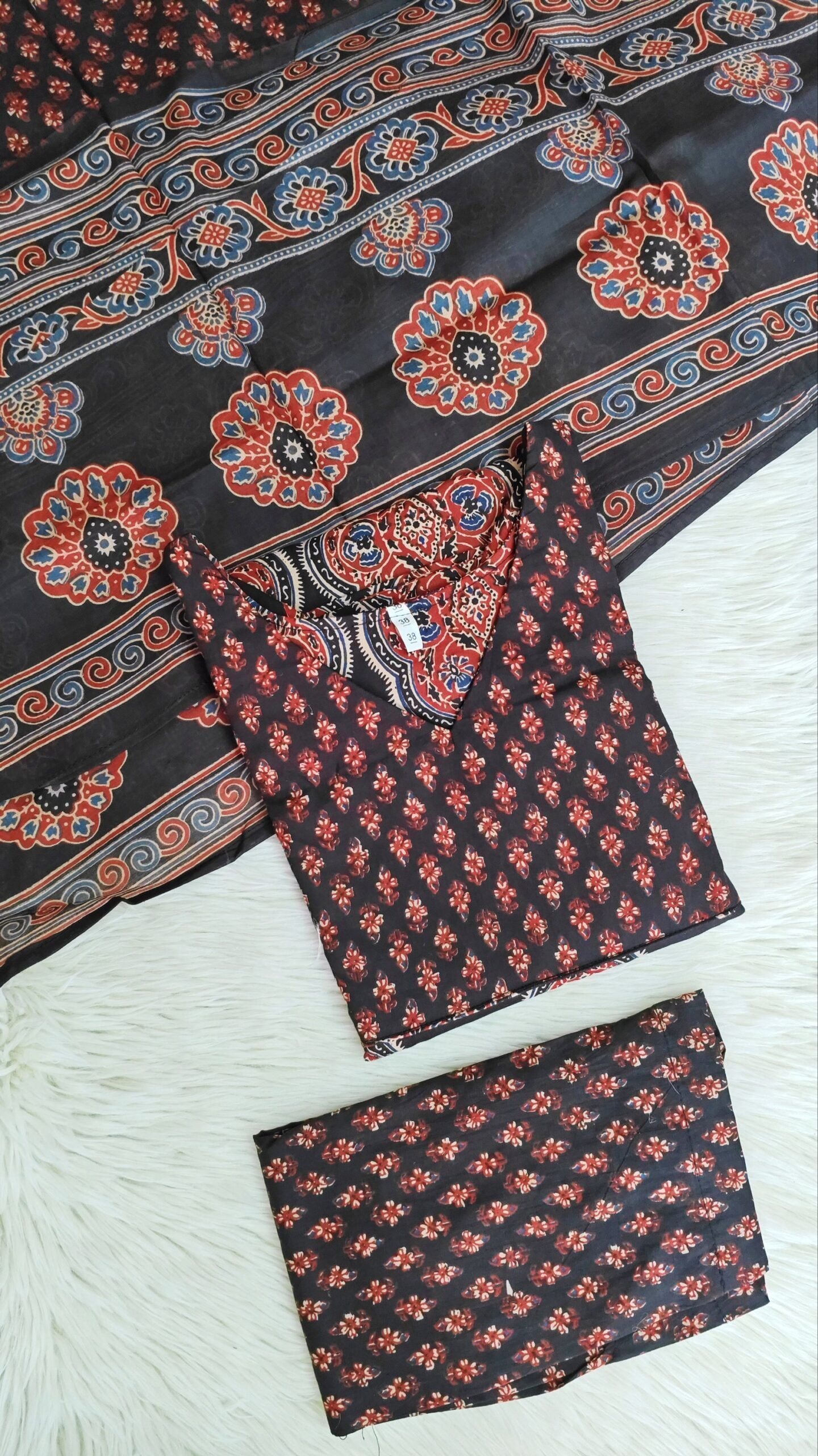 Fabric- Cotton 3 Piece set With Lining Length- 46 3/4 Sleeves without Lining V neck Normal Cotton Bottom Cotton Dupatta 2.5 mtr