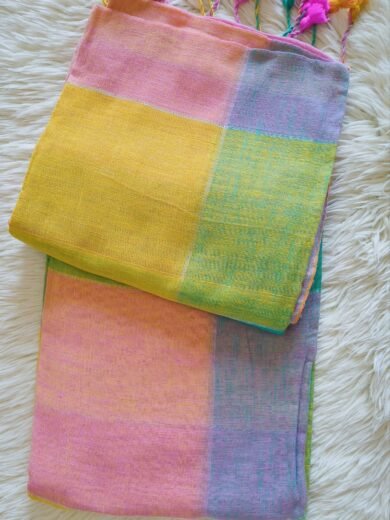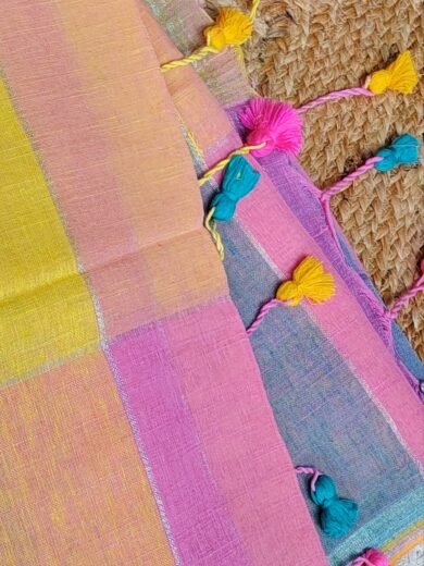 LINEN COTTON SAREE WITH MULTI COLOUR TASSELS - SAL560